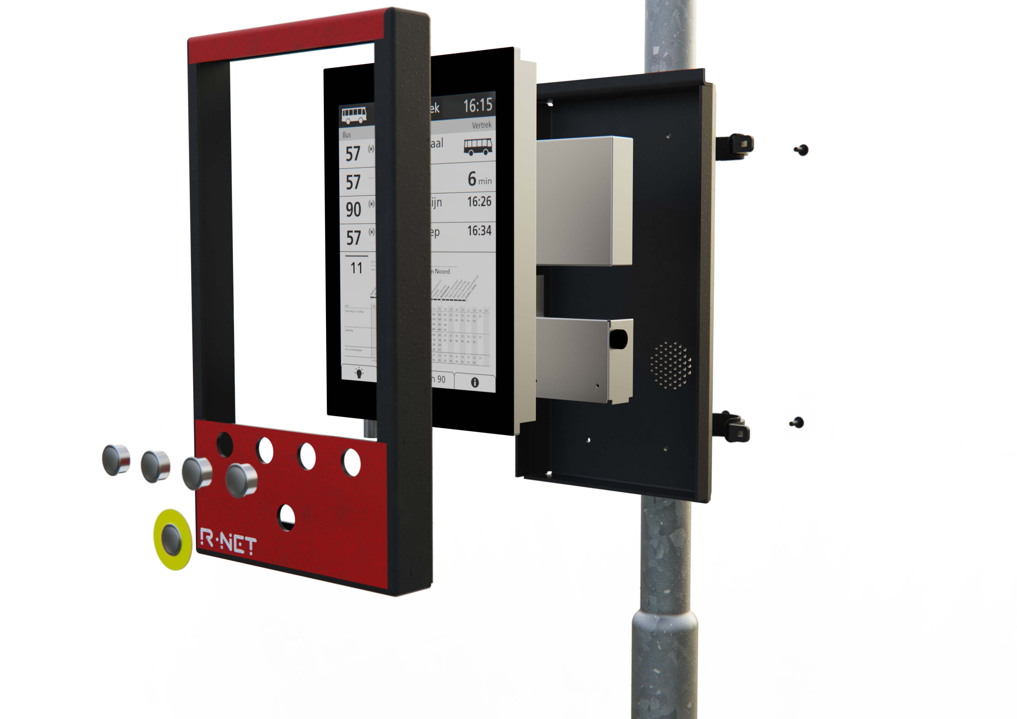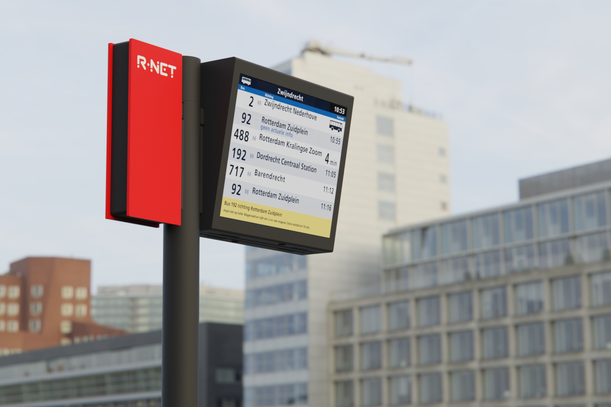 R-net is the public transportation network of the Randstad region. They inform their travelers on their various departure and arrival platforms through DRIS (Dynamic Traveler Information System).